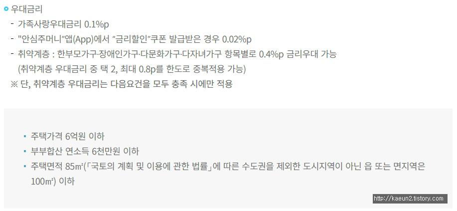 대상주택은 6억원만 넘지 않으면 됩니다. (여기도 디딤돌보다 덜 까다롭네요. )