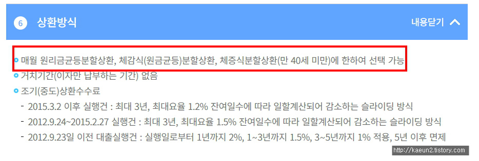 상환방식도 디딤돌보다 좋은 것이 하나 더 선택사항이 추가 되었네요.