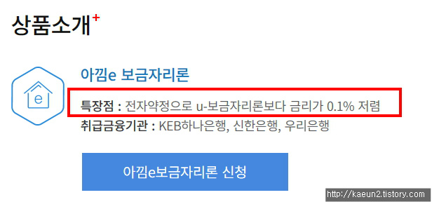 보금자리론 중에서 전자약정을 통하여 금리가 0.1더 저렴한 아낌e 보금자리론이란 상품이 있습니다.